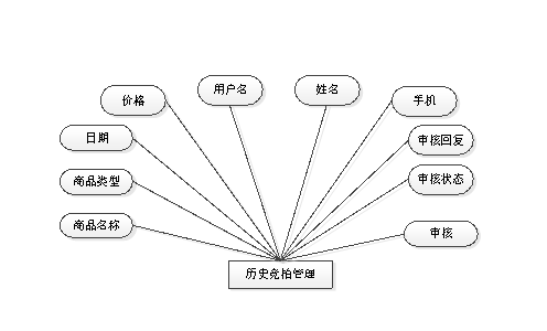 历史竞拍管理,在历史竞拍管理页面可以查看商品名称;商品类型、日期、价格、用户名、姓名、手机、地址、审核回复、审核状态、审核等内容,并可根据需要对历史竞拍管理进行详情,修改,删除或详细内容等操作,如图5-9所示。
