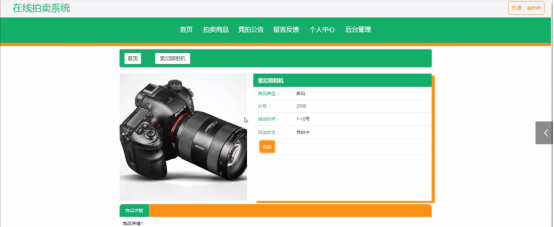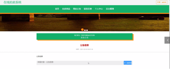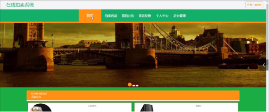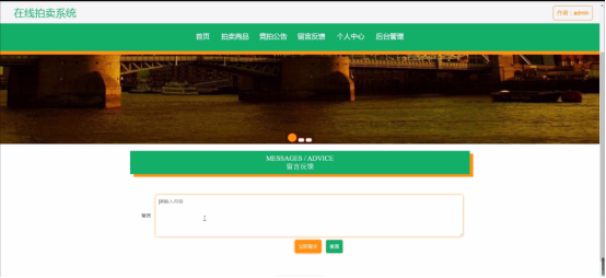 用户登录进入在线拍卖系统可以首页、拍卖商品、竞拍公告、留言反馈、个人中心、后台管理等内容,如图5-16所示。