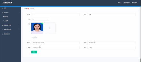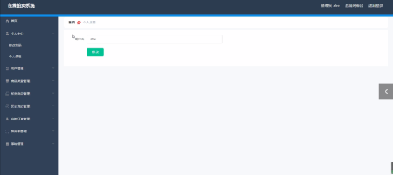 用户登录进入在线拍卖系统可以查看首页、个人中心、历史竞拍管理、竞拍订单管理、留言板管理等内容,如图5-12所示。