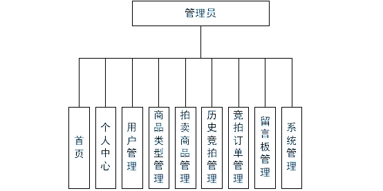 用户:首页、个人中心、历史竞拍管理、竞拍订单管理、留言板管理,前台首页;首页、拍卖商品、竞拍公告、留言反馈、个人中心、后台管理模块的修改和维护操作。