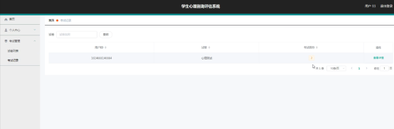 开发学生心理咨询评估系统是作为毕设作品进行设计的,这个毕设作品是我在校进行知识学习的一个毕业考核项目,也是检验我通过网络工具,图书工具等学习工具进行自学的能力水平,让我在根据程序开发的需求分析初步完成程序功能之外,还接触了程序的测试过程,了解程序测试的具体的过程,以及遇到问题怎么去寻找相应的解决办法等等,毕业作品的制作以及设计才是学校对我真正的考验。