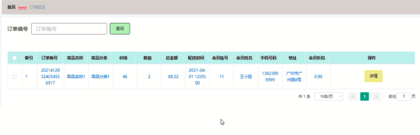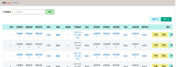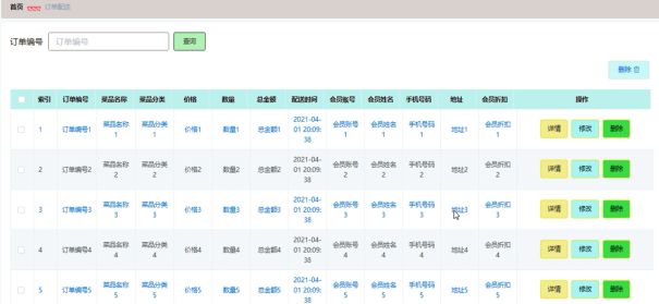 管理员可增删改查订单配送信息,订单配送管理界面展示如图5-14所示。