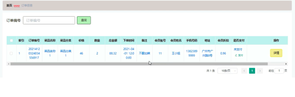 用户对个人订单可进行查看、支付等,订单信息界面展示如图5-6所示。