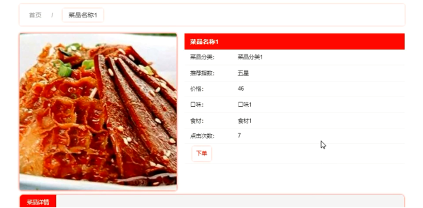 用户可选择菜品查看菜品详情信息,登录后可进行下单操作,菜品详情界面展示如图5-4所示。