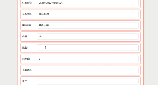 管理员可添加、修改和删除菜品信息,菜品信息管理界面展示如图5-10所示,添加菜品信息界面展示如图5-11所示。