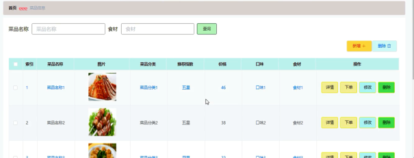 图5-10菜品信息管理界面