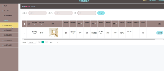 管理员登录成功后,进入后台页面,可以进行查看个人中心、房屋类型管理、房屋信息、预约看房管理、合同信息管理、房屋报修管理、房屋评价管理、我要当房东管理、留言板管理、系统管理等功能模块,进行相对应操作。