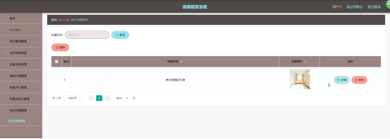 通过用户后台系统可以进行个人中心、预约看房管理、合同信息管理、房屋报修管理、维修处理管理、房屋评价管理、我要当房主管理和我的收藏管理等功能模块,进行相对应操作。