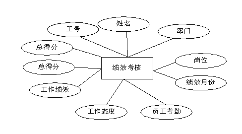 本系统中的主要数据有管理员信息、员工信息、绩效指标信息、绩效考核信息等,主要画出关键实体。