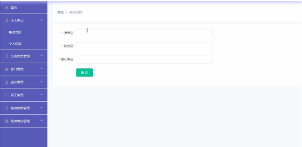 员工可以查询公告和绩效指标、绩效考核信息,也可以修改个人资料和密码。实现界面如下图4.9所示: