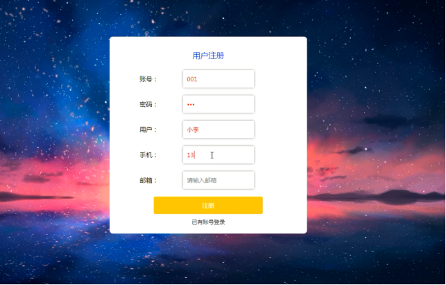 没有账号的用户可进入注册界面进行注册操作,用户注册界面的运行效果如图5-1所示.