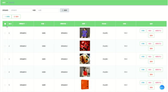 管理员可添加、修改和删除团购信息,团购信息管理界面展示如图5-11所示 。
