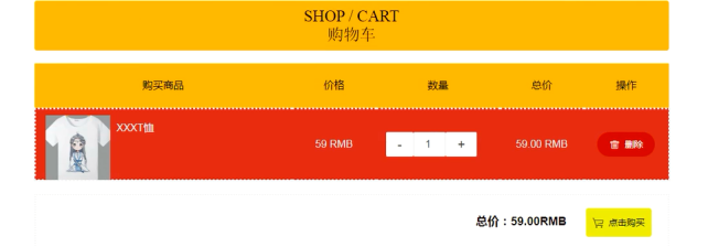 用户在购物车界面可查看购物车商品信息,并可进行修改数量、删除商品以及购买等操作,购物车界面展示如图5-5所示。