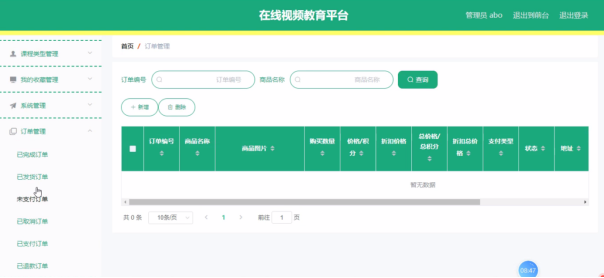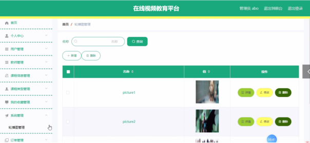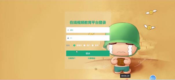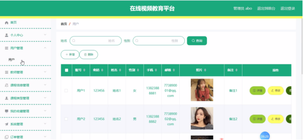 使用在线视频教育平台分为管理员和用户、教师三个角色的权限模块。