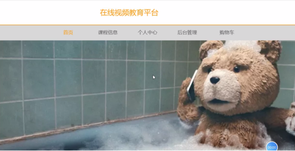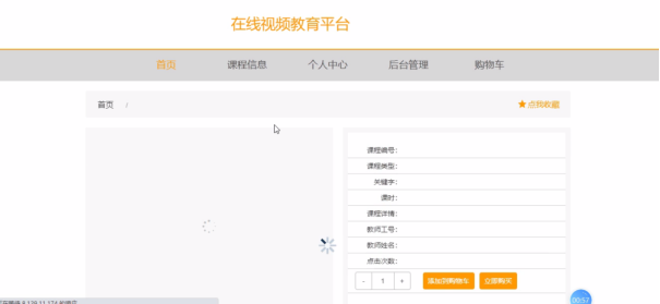 在前台首页,在首页可以查看首页、课程信息、个人中心、后台管理、购物车等内容,如图5-15所示。