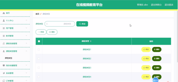 课程类型管理:通过列表可以获取课程类型等信息,进行修改或删除操作,如图5-9所示。