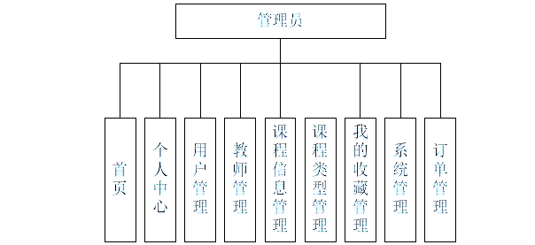管理员登录后可进行查看首页、个人中心、用户管理、教师管理、课程信息管理、课程类型管理、我的收藏管理、系统管理、订单管理等功能,管理员的用例如图3-1所示。