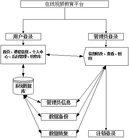 这些功能可以充分满足在线视频教育平台的需求。此系统功能较为全面如下图系统功能结构如图4-3所示。