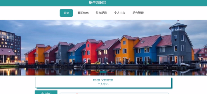 用户登录进入蜗牛兼职网可以查看首页、个人中心、职位申请管理等功能。如图5-9所示