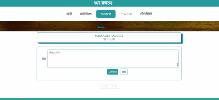 蜗牛兼职网,在蜗牛兼职网可以查看首页、兼职信息、留言反馈、个人中心、后台管理等内容,如图5-11所示。