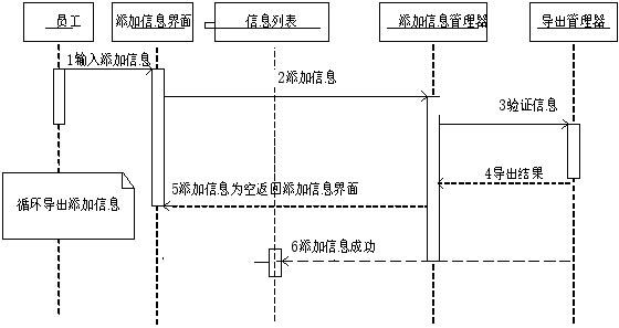 管理员以及员工登录后均可进行添加信息操作,添加信息模块顺序图如图4-4所示。
