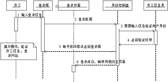 登录模块主要满足了管理员以及员工的权限登录,登录模块顺序图如图4-3所示。