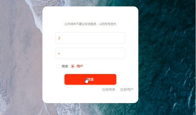 用户要想实现商品购买等操作,必须进行登录操作,在登录界面输入正确的用户名和密码,选择登录类型,点击登录按钮进行登录,用户登录界面如图5-2所示。