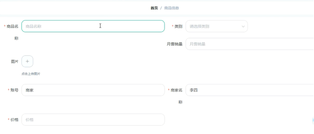 商家可进入到添加商品信息界面进行添加信息,添加商品信息界面展示如图5-13所示 。