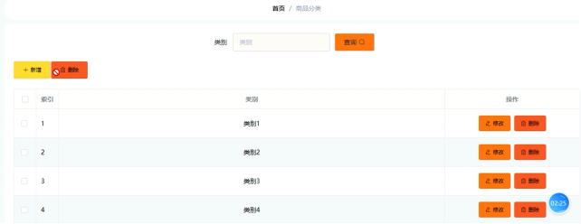 管理员可增删改查商品分类信息,商品分类界面展示如图5-11所示 。