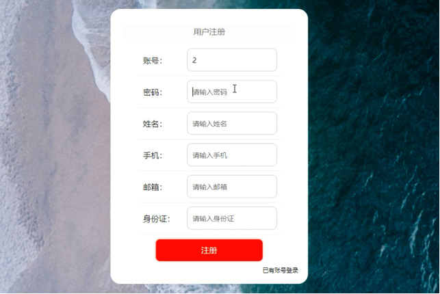 没有账号的用户可进入注册界面进行注册操作,用户注册界面的运行效果如图5-1所示.