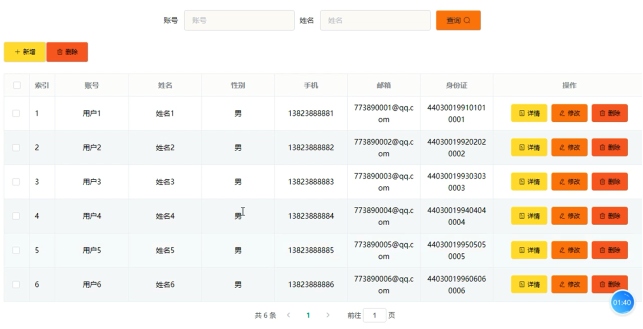 管理员可查看、修改和删除用户信息,并可新增用户,用户管理界面展示如图5-10所示 。