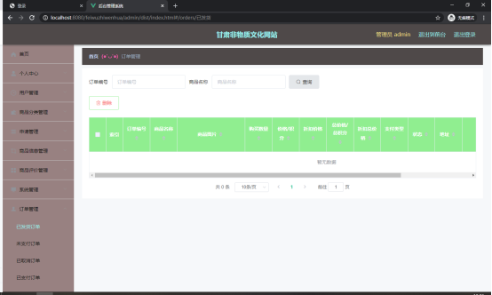 如图5.4显示的就是订单信息管理页面,此页面提供给管理员的功能有:查看用户的订单信息,订单信息作废,即可删除。