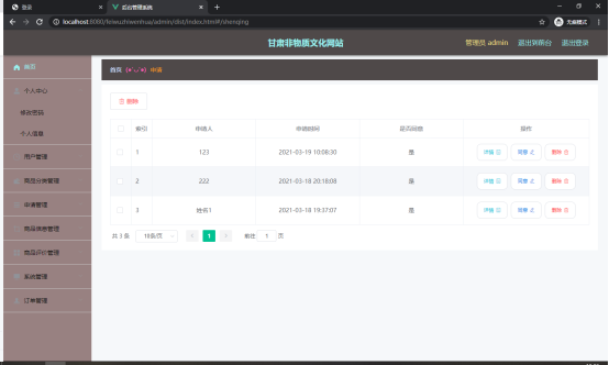 图5.3 申请信息管理页面