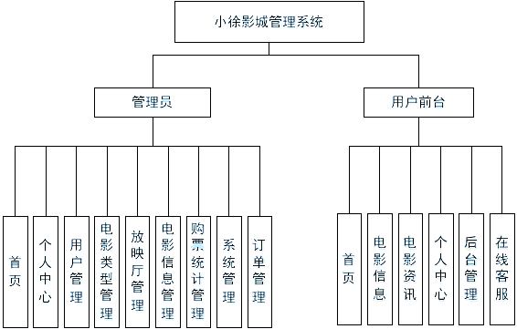 通过系统需求分析,本小徐影城管理系统的功能结构设计如图4-1所示: