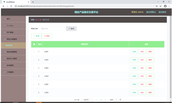如图5.3显示的就是商品分类管理页面,此页面提供给管理员的功能有:根据商品分类进行条件查询,还可以对商品分类进行新增、修改、查询操作等等。