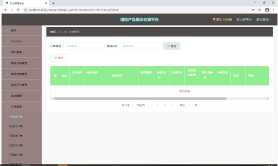 如图5.4显示的就是订单管理管理页面,此页面提供给管理员的功能有:根据订单管理进行新增、修改、查询操作等等。