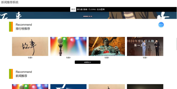 用户登录后,可以在首页查看排行榜推荐,新闻推荐信息。界面如下图所示: