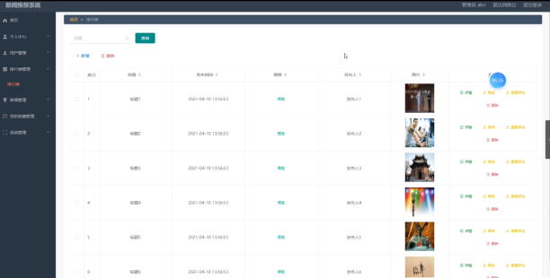 系统管理员可以对排行榜进行手动管理,可以对排行榜进行添加删除修改操作。具体界面如图5.2所示。