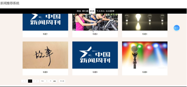 用户登录后,首页点击新闻,可以出现新闻界面,并且有分页显示。界面如下图所示: