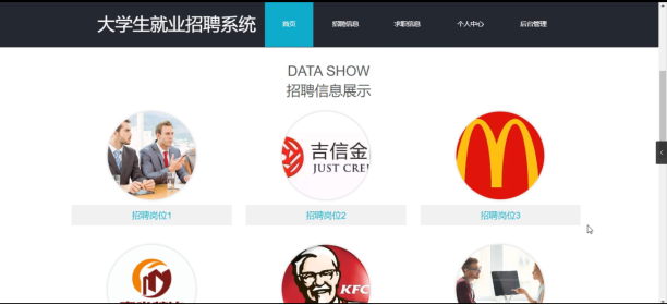 用户登录可以在首页看到招聘信息展示也一些求职信息展示。具体界面如图5.2所示。