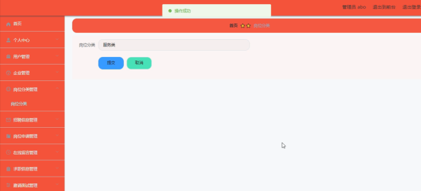 管理员可以对岗位分类进行添加,修改查询以及删除操作。界面如下图所示: