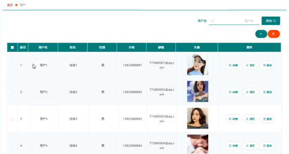 管理员可查看、添加、修改和删除用户信息,用户管理界面展示如图5.6所示。