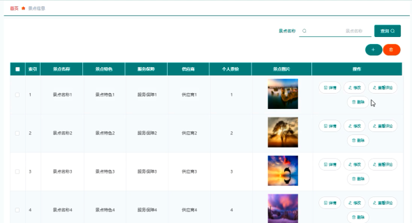 管理员可添加、修改和删除景点信息信息,景点信息管理界面展示如图5.2所示,添加景点信息信息界面展示如图5.3所示。