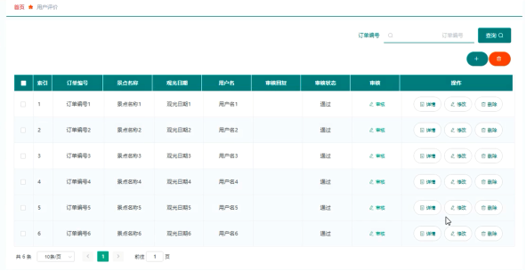 管理员可查看用户评价信息,并可对其进行审核、修改和删除操作,用户评价管理界面展示如图5.5所示。