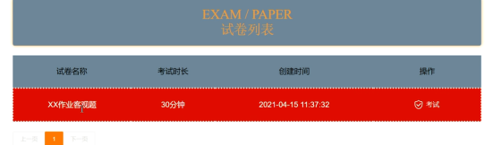 学生在试卷列表界面可查看所有试卷,并可选择考试,试卷列表界面展示如图5-4所示,考试界面展示如图5-5所示。