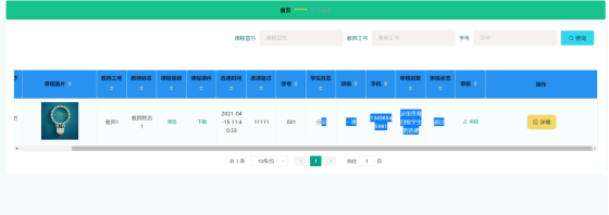 教师可查看学生选课信息,并可进行审核操作,学生选课管理界面展示如图5-14所示。