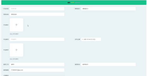 教师可添加课程作业信息,添加作业界面展示如图5-13所示。