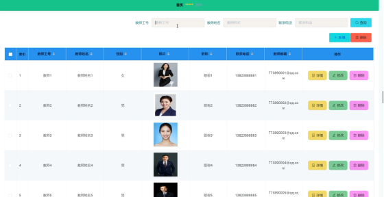 管理员可增删改查教师信息,教师管理界面展示如图5-9所示。