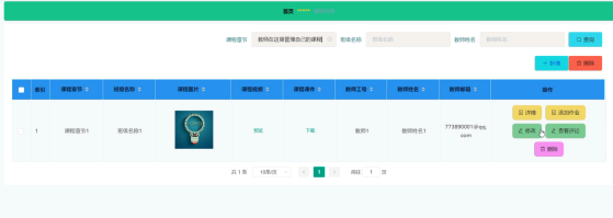 教师可增删改查课程信息,并可添加作业和查看评论,课程信息管理界面展示如图5-12所示。