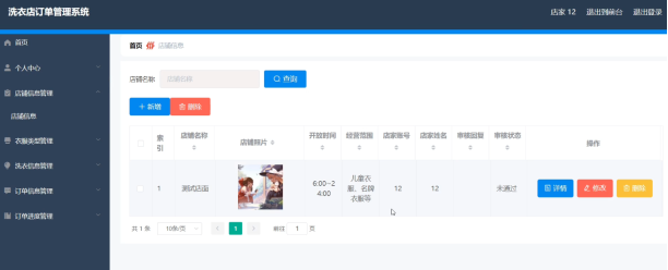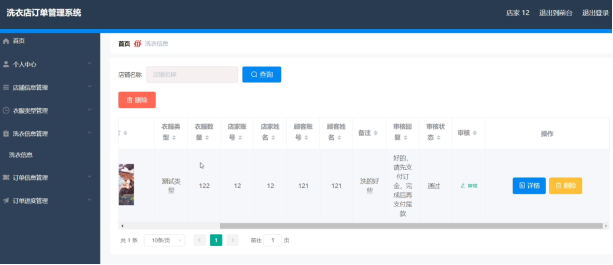 店家可以对报洗衣信息信息进行查询,审核等操作。界面如下图所示: